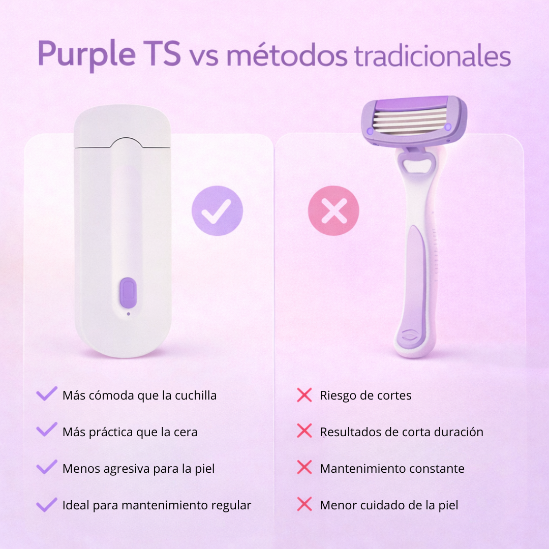 Dedica menos tiempo a la depilación y más a ti.Purple TS convierte un gesto cotidiano en un momento sencillo, cómodo y sin estrés. Ideal para mantener tu piel cuidada sin alterar tu rutina.Porque cuidarte no debería ser complicado.