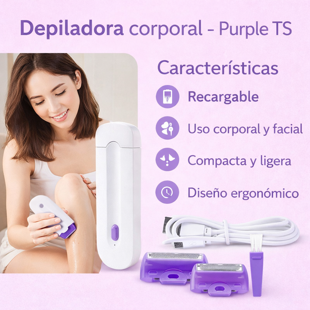 La Depiladora corporal – Purple TS está diseñada para ofrecer una depilación práctica, cómoda y segura desde casa. Su sistema eléctrico permite eliminar el vello de forma sencilla, ayudando a mantener la piel suave sin necesidad de cuchillas ni cera.