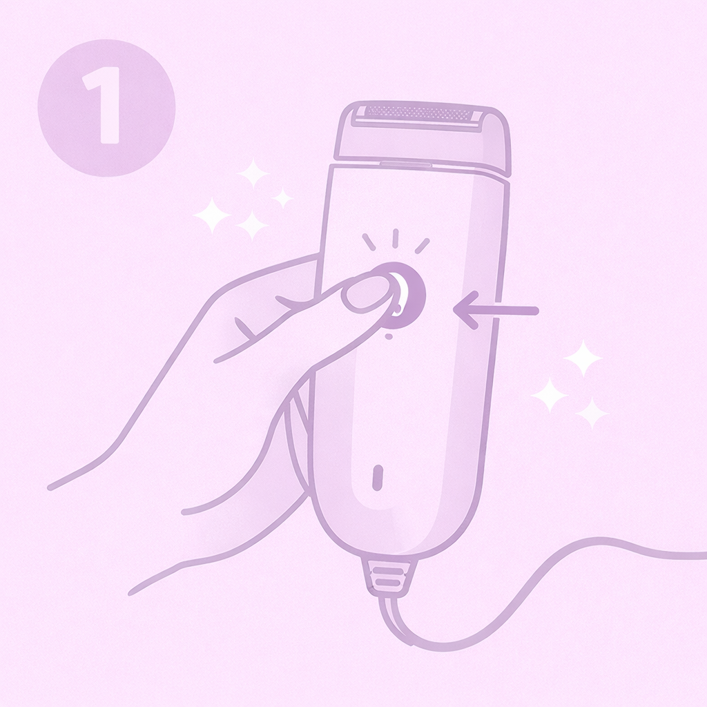 Asegúrate de que la piel esté limpia y seca. Enciende la depiladora presionando el botón de encendido.
