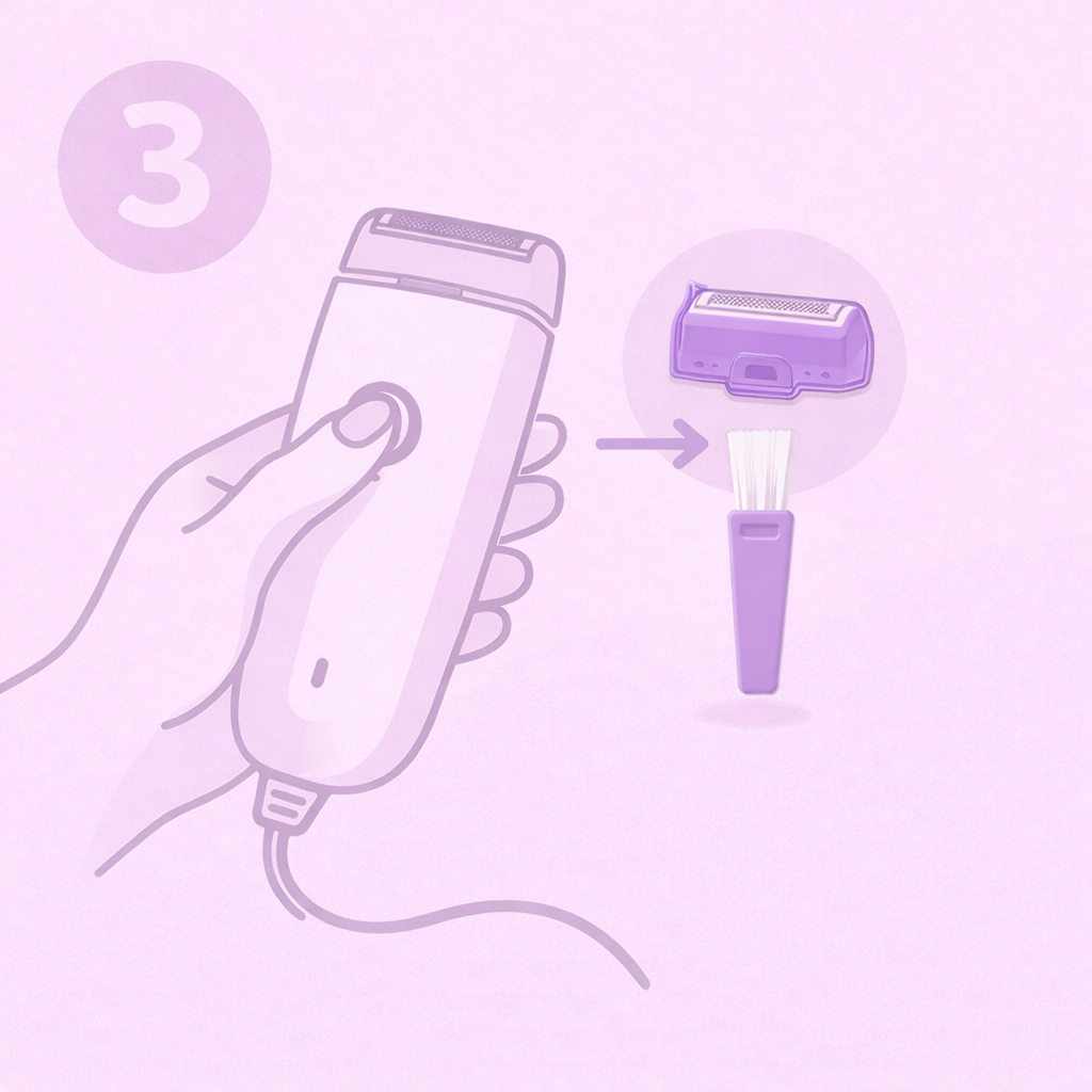Apaga el dispositivo y limpia el cabezal después de cada uso con el cepillo incluido para mantener un rendimiento óptimo.Repite 3–4 veces por semana.